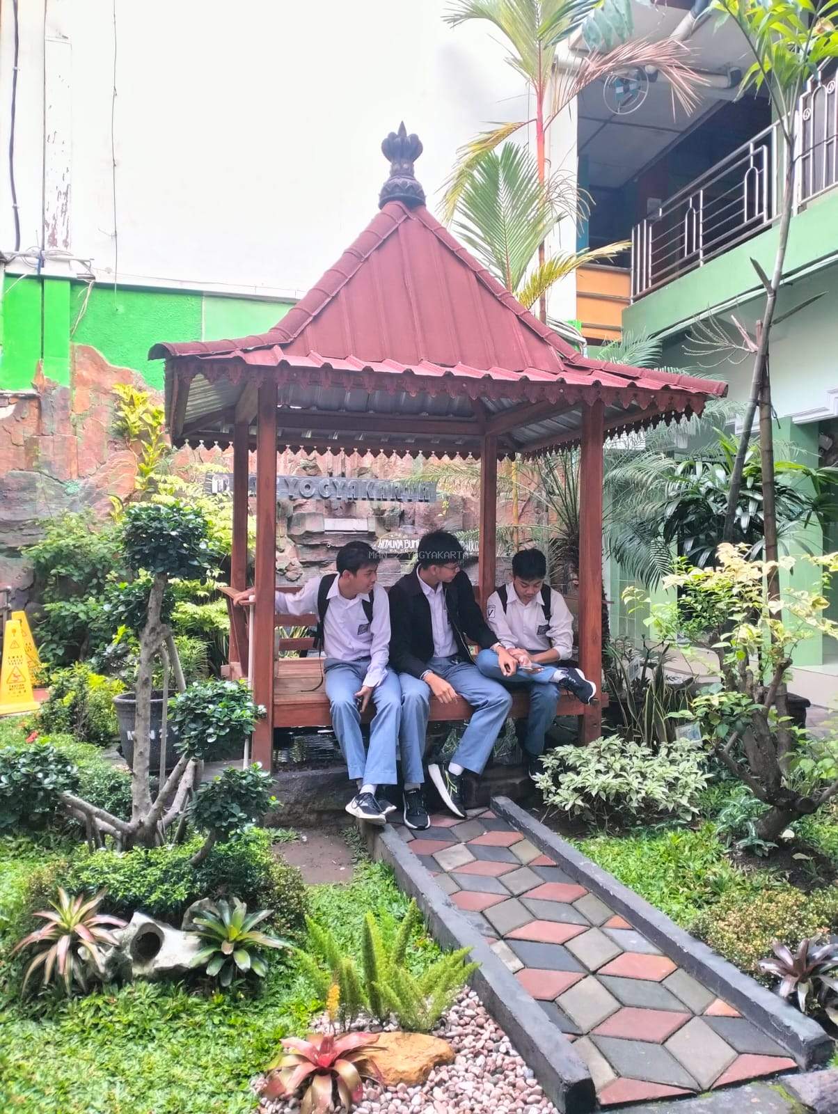 sekadar bercengkerama di sela kegiatan belajar. Guru pun memanfaatkan area ini