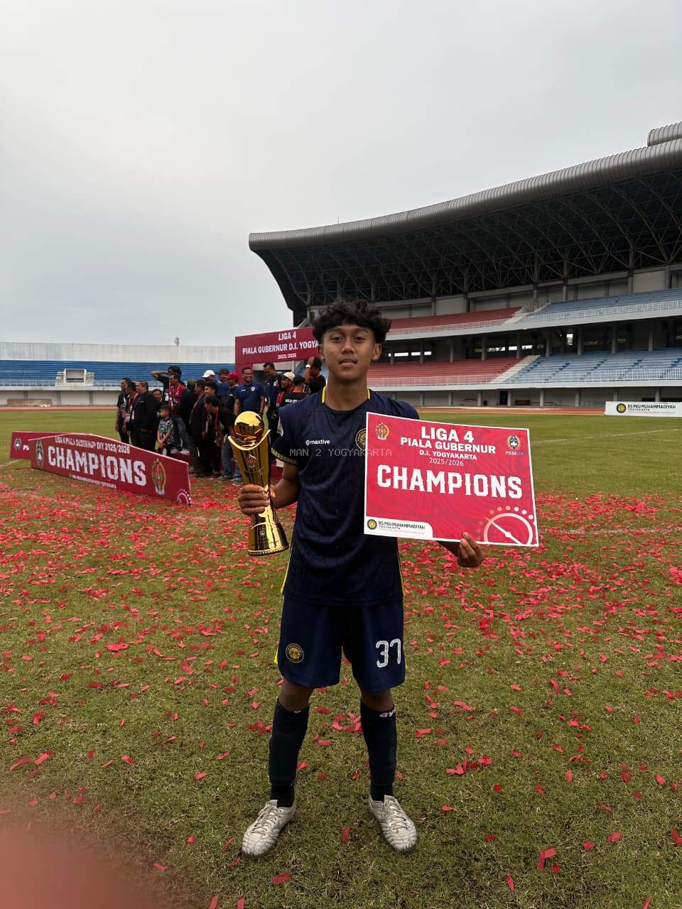 Yogyakarta (MAN 2 Yogyakarta) — Prestasi membanggakan kembali ditorehkan oleh peserta didik MAN 2 Yogyakarta di bidang olahraga. Sangkakala, murid kelas XF (KKO), berhasil meraih Juara 1 tingkat Provinsi Daerah Istimewa Yogyakarta pada ajang Liga 4 Piala Gubernur D. I. Yogyakarta Tahun 2025/2026 yang digelar pada Sabtu (18/01/2026) di Stadion Mandala Krida, Yogyakarta.