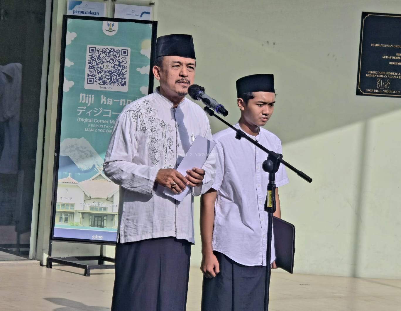 Yogyakarta (MAN 2 Yogyakarta) - Suasana khidmat menyelimuti halaman depan Gedung Perpustakaan dan Laboratorium IPA MAN 2 Yogyakarta pada Selasa (22/10/2025), saat keluarga besar madrasah melaksanakan upacara bendera peringatan Hari Santri Nasional 2025.