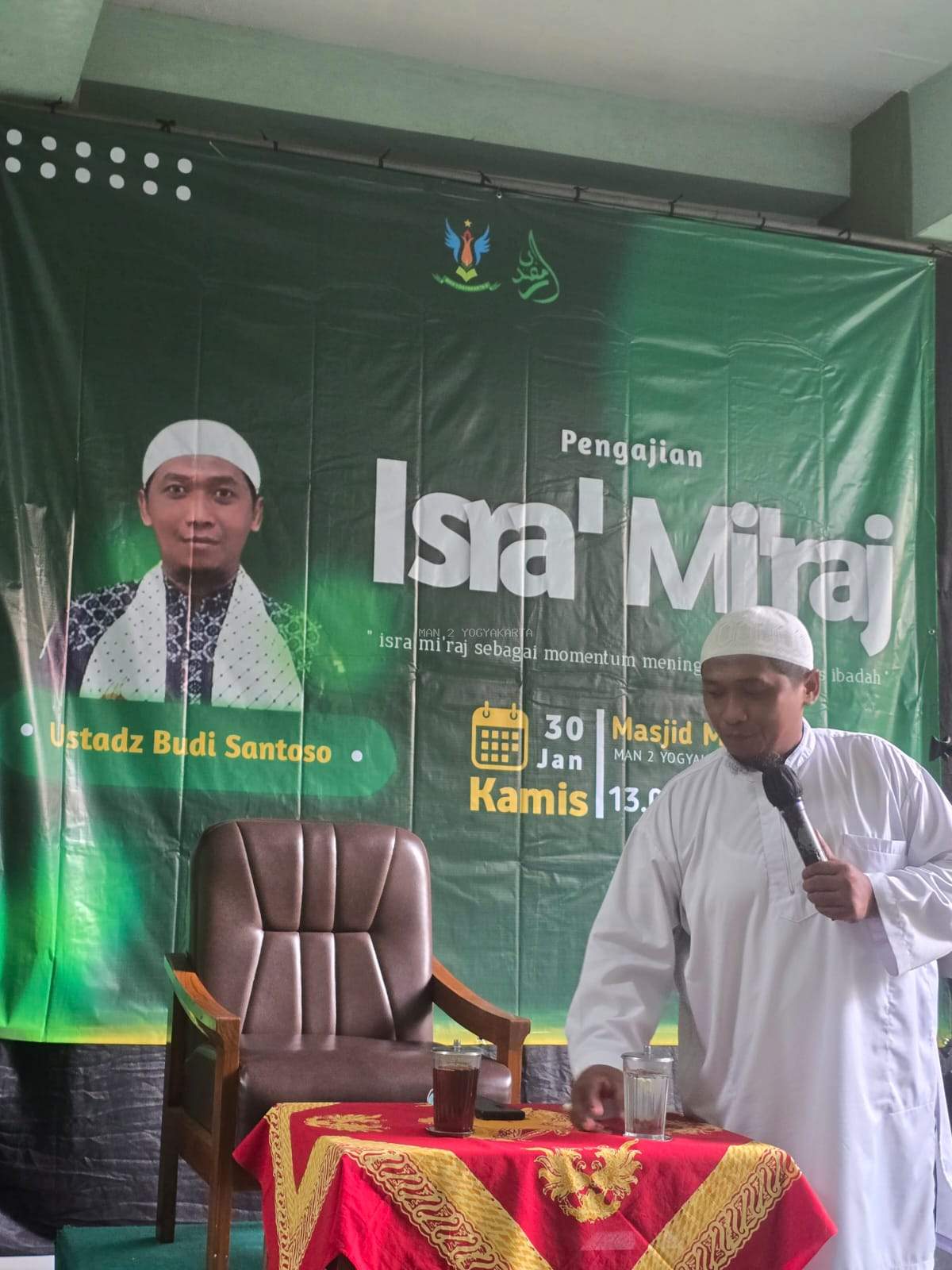 Yogyakarta (MAN 2 Yogyakarta) - Ustadz Budi Santoso kisahkan Perjalanan Rasulullah shallallahu ‘alaihi wasallam, dengan suara lantang, humoris, dan semangat. Kisah ini disampaikan di hadapan civitas akademika MAN 2 Yogyakarta, Kamis (30/01/2025) di masjid lantai 1. OSIS MAN 2 Yogyakarta yang mempersiapkan acara sukses ini.
