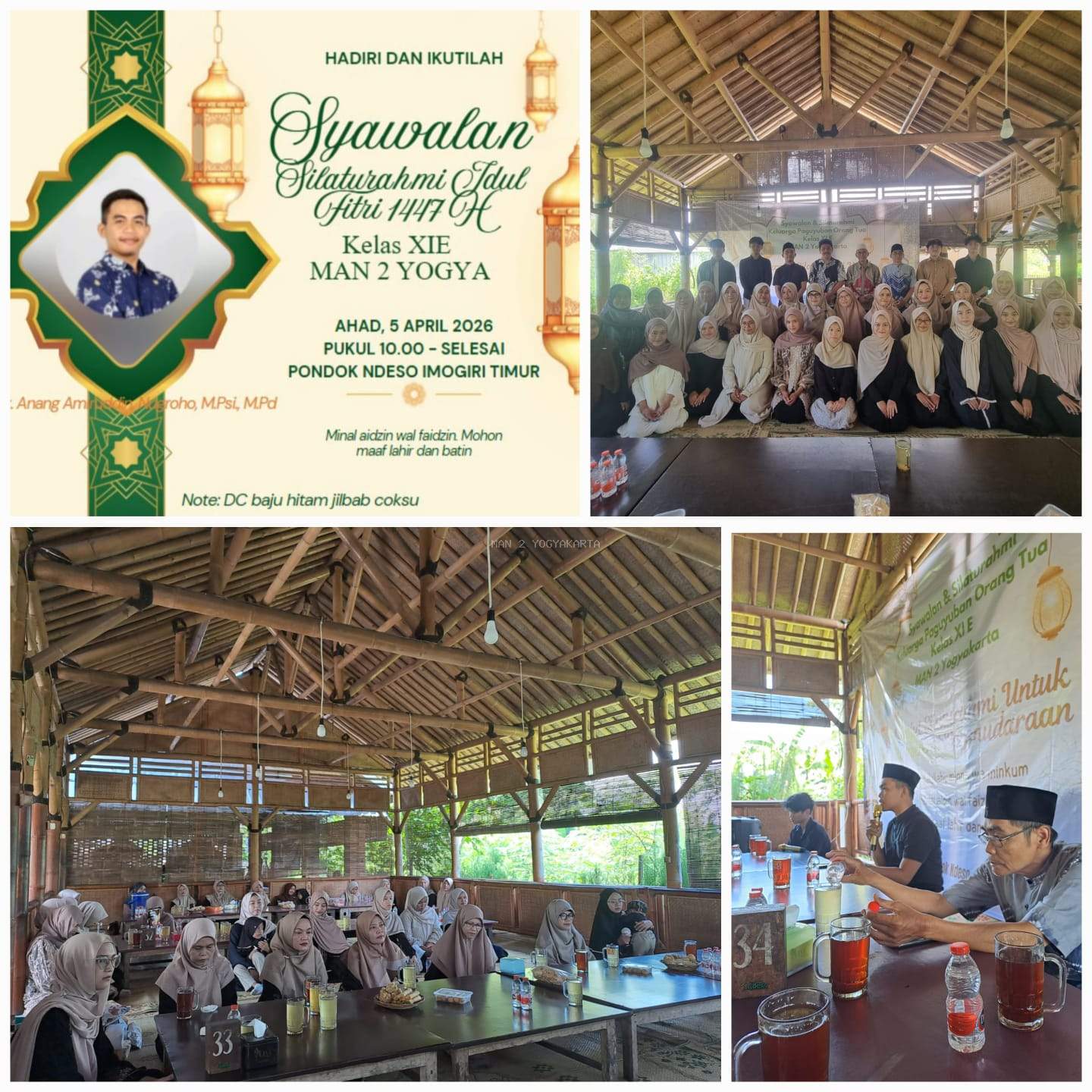 Yogyakarta(MAN 2 Yogyakarta)_ Paguyuban Orang Tua Murid (POT) kelas XI E MAN 2 Yogyakarta mengadakan acara Syawalan atau Halalbihalal pada Ahad (5/4/2026) di RM Pondok Ndeso, Imogiri Timur, Yogyakarta yang dihadiri oleh orang tua murid, pendamping akademik, dan murid kelas XI E. Syawalan tersebut dalam rangka mempererat tali silaturahmi setelah perayaan Idul Fitri 1447H.
