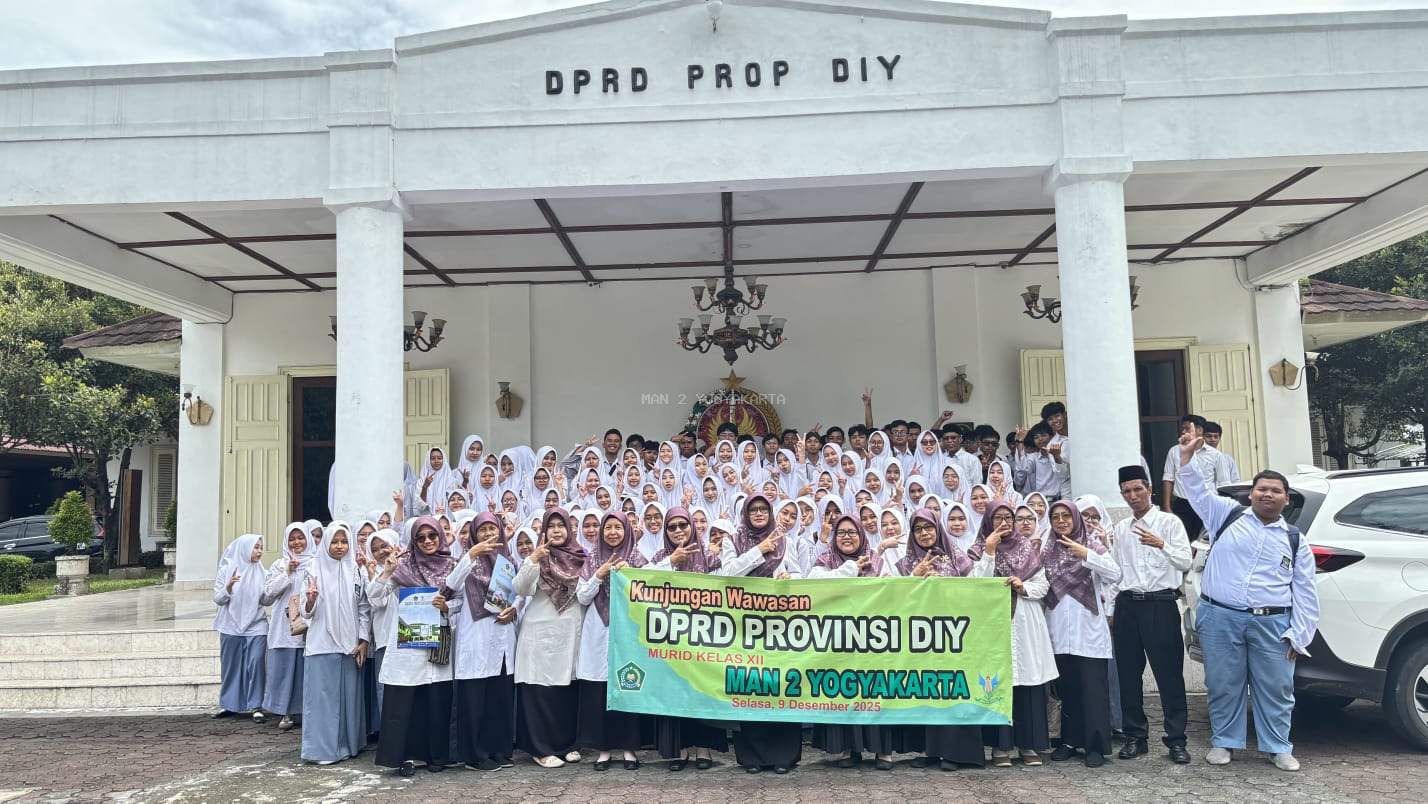 Yogyakarta (MAN 2 Yogyakarta) – Kelas XII MAN 2 Yogyakarta melaksanakan kegiatan outing class ke DPRD DIY untuk memperkuat pemahaman peserta didik mengenai praktik demokrasi dan proses penyusunan kebijakan daerah. Kegiatan yang berlangsung pada Selasa (9/12/2025), ini menjadi bagian dari aplikasi langsung pembelajaran PPKn.