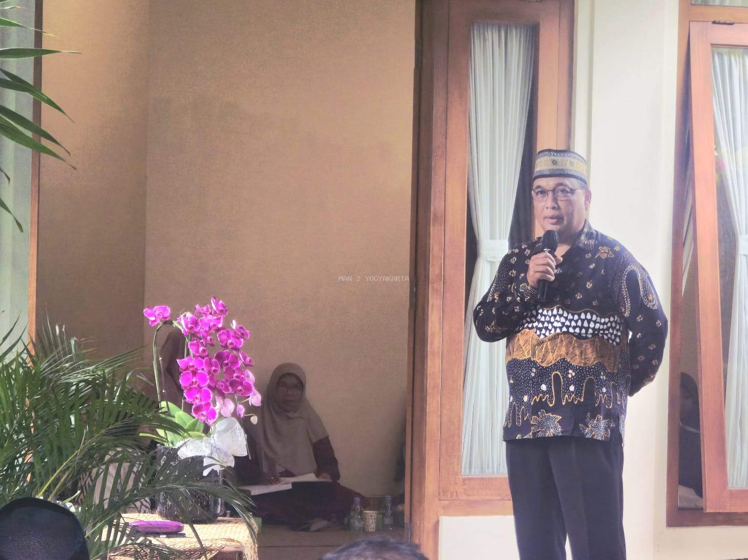 Yogyakarta (MAN 2 Yogyakarta) — Empat fase kehidupan manusia dalam perspektif Al-Qur’an menjadi tema utama pengajian As-Sakinah keluarga besar MAN 2 Yogyakarta yang digelar di kediaman Rini Wijayanti pada Sabtu, (25/10/ 2025). Kajian yang disampaikan oleh Prof. Dr. H. Agung Budiyanto, M.P., Ph.D. ini menghadirkan suasana yang hangat dan penuh tawa. Dengan gaya khasnya yang kocak namun sarat makna, Agung menguraikan perjalanan hidup manusia dari dunia hingga akhirat, membuat para jamaah larut dalam renungan sekaligus tersenyum penuh keakraban.