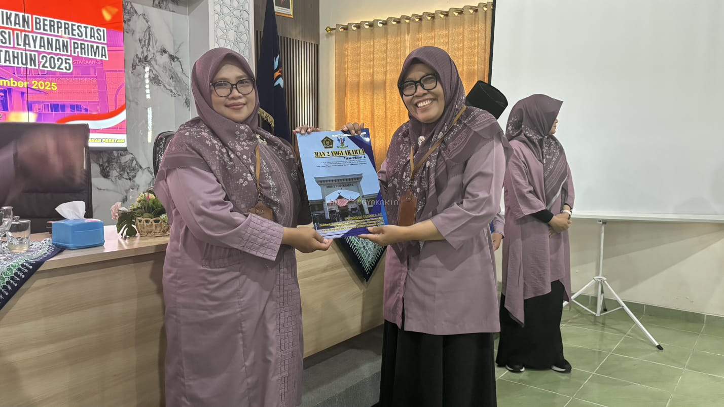 Yogyakarta (MAN 2 Yogyakarta) - Ketelatenan dalam bekerja sering kali berjalan senyap, namun dampaknya nyata bagi kualitas layanan pendidikan. Konsistensi itulah yang mengantarkan Retno Nur Wulandari, S.E., tenaga kependidikan MAN 2 Yogyakarta, meraih Juara 2 Tenaga Kependidikan Berprestasi Tahun 2025 dalam rangka Hari Guru Nasional. Apresiasi diserahkan Kepala Tata Usaha, Isti Wahyuni, SE, MM pada Jumat (12/12/2025).