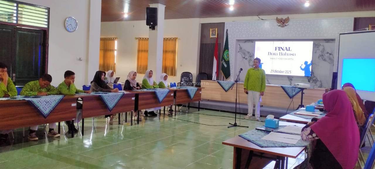 Yogyakarta (MAN 2 Yogyakarta) - Semangat kebahasaan dan percaya diri murid-murid MAN 2 Yogyakarta tampak mengisi suasana Aula lantai 3 pada Selasa (28/10/2025). Hari itu, madrasah menggelar Pembukaan Final Pemilihan Duta Bahasa MAN 2 Yogyakarta Tahun 2025, yang menampilkan sepuluh finalis terbaik dari berbagai kelas. Ajang tahunan ini menjadi wadah pengembangan potensi murid dalam berbahasa, berkomunikasi, dan menampilkan karakter unggul khas madrasah.